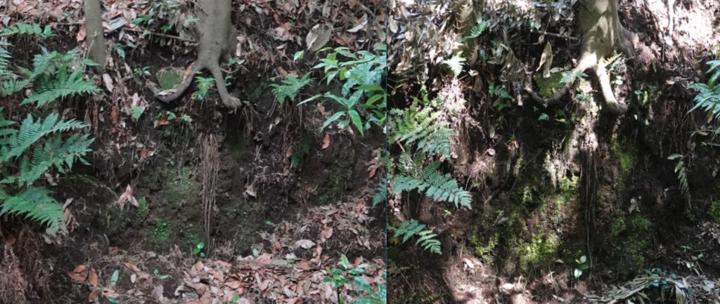 上部の樹林は雨の直撃を避ける雨傘の役目と、日光が入り込んで乾燥するのを防ぐ日傘の役目を担っています。